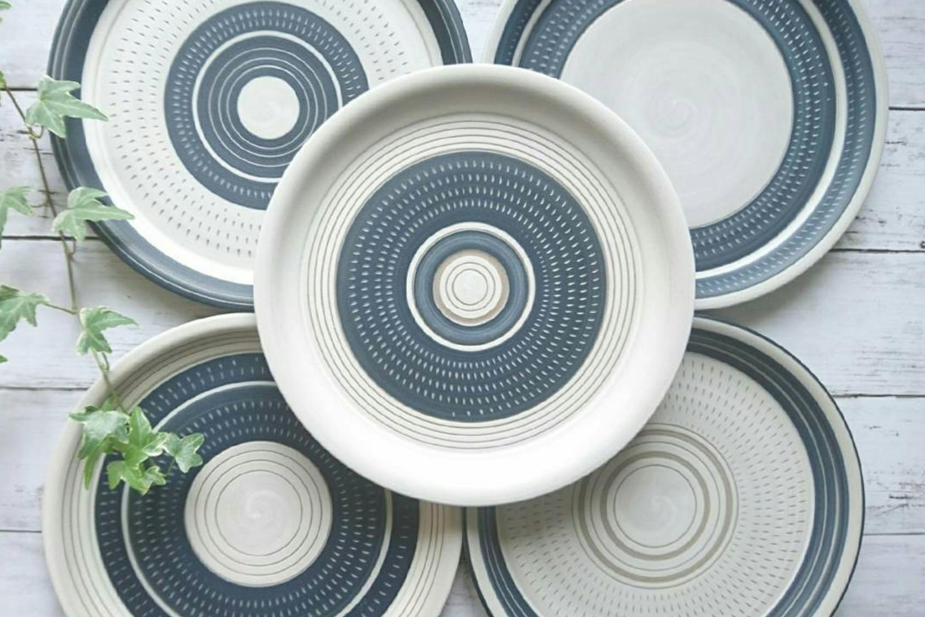 どのうつわにも、小石原焼の伝統技法「とびかんな」を入れています。弟子コースのうつわは、さまざまな方にも使いやすいような彩りを施しました。