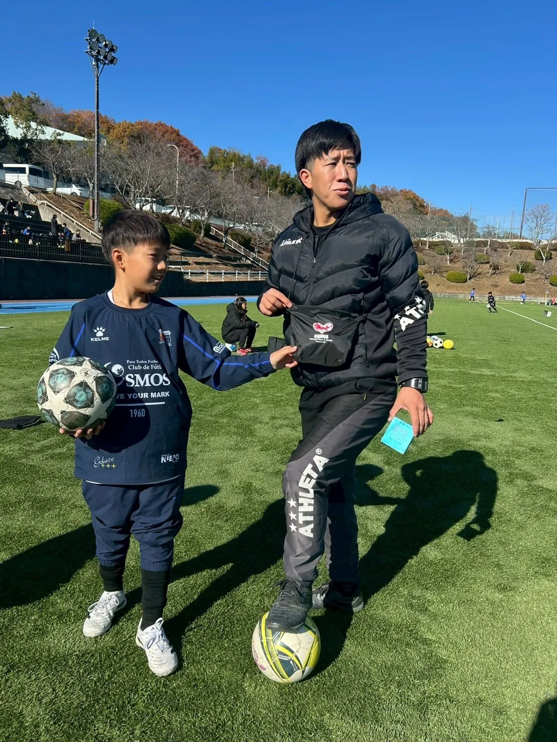 コーチがクラファンの返礼品を、試合のピッチまで持って行ってくださいました!