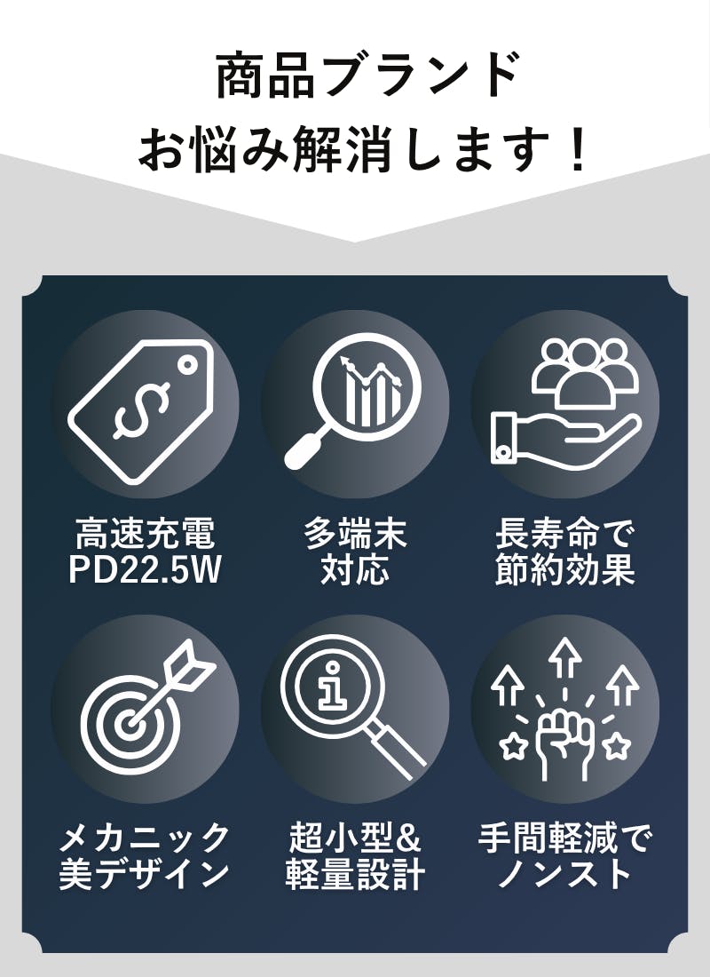 最大22.5Wの急速充電に対応し、対応端末であれば従来の5V/2Aクラスに比べて圧倒的にスピーディーに充電可能です。