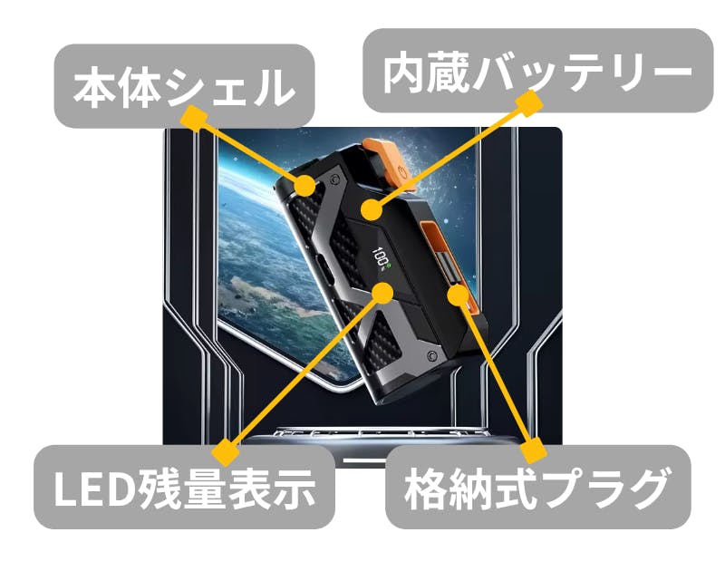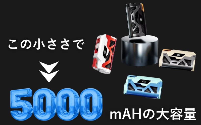 45×26×82mmのカプセルサイズに、5000mAhのリチウムポリマー電池と高速充電回路を凝縮。