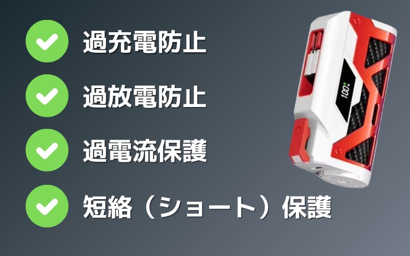内部回路には、モバイルバッテリーに必須の保護機能をフル装備。