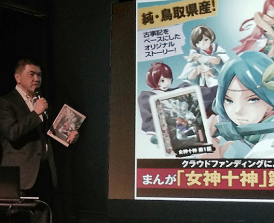 米子駅前イオン3階 2月1日にオープンする 「ガイナックスシアター」の前夜祭 米子映画宴第29回「テヘペロ米子超会議」にて 『純・鳥取県産!まんが「女神十神」第2話を出版したい!』 のプレゼンをしてきました! クラウドファンディングということで 興味深くご覧頂きました! これからもがんばって描いていきます! 作画は現在追い込み中です! 寺西 米子映画宴 http://yonago-eiga.com/archives/1738