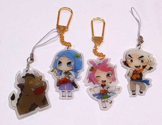 4コマめがみのグッズを開発中です! 現在は、ストラップのサイズを調整中。 いい感じです〜(*´∀`*)ふひゅ〜♪