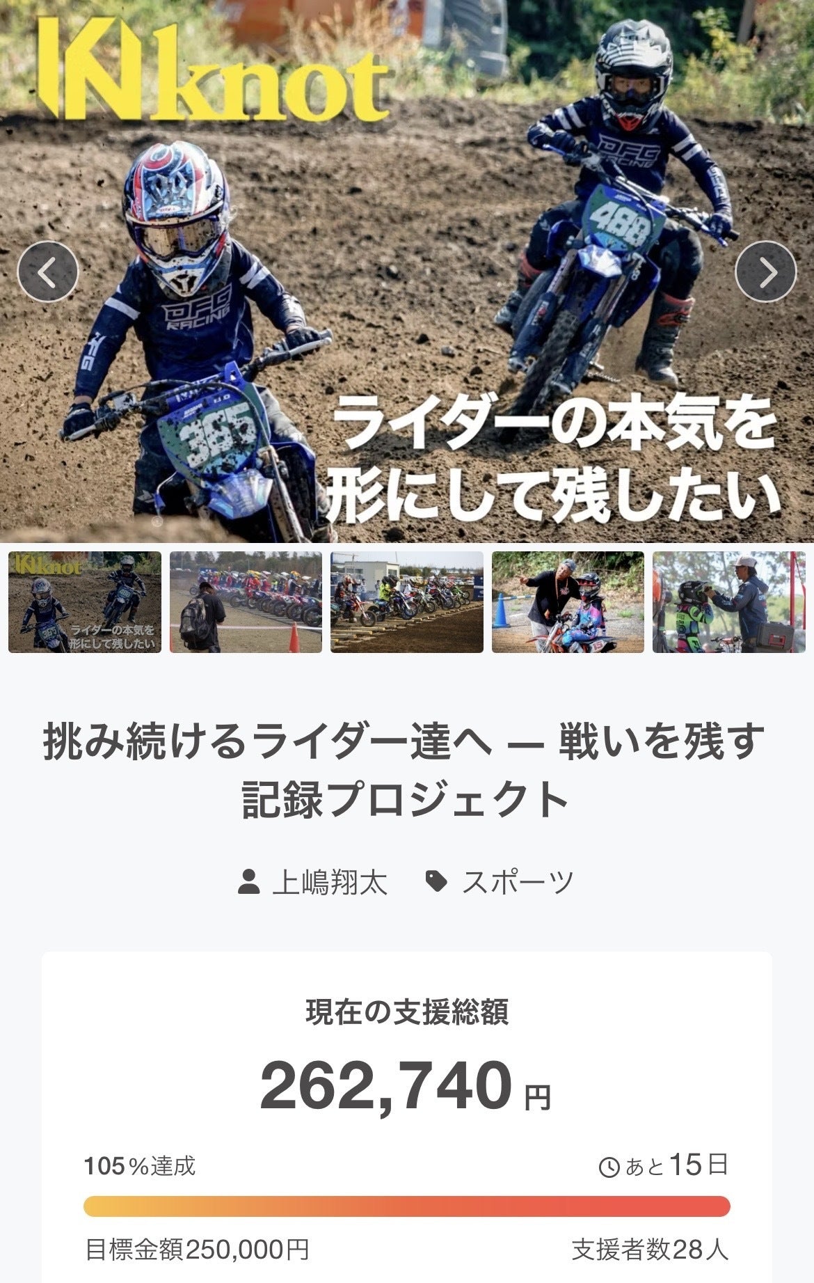 関東戦撮影以外にもモトクロス界に貢献できることを発信するには、このクラウドファンディングを成功させることが絶対に必要でした。
