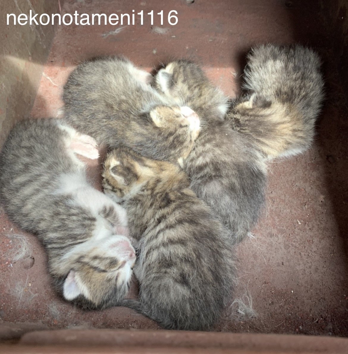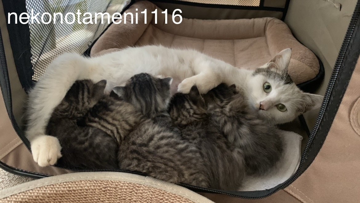 ※子猫たちは幸いすぐに里親さんが決まり、母猫は友人の家で引き取っていただき、今も元気に暮らしています。