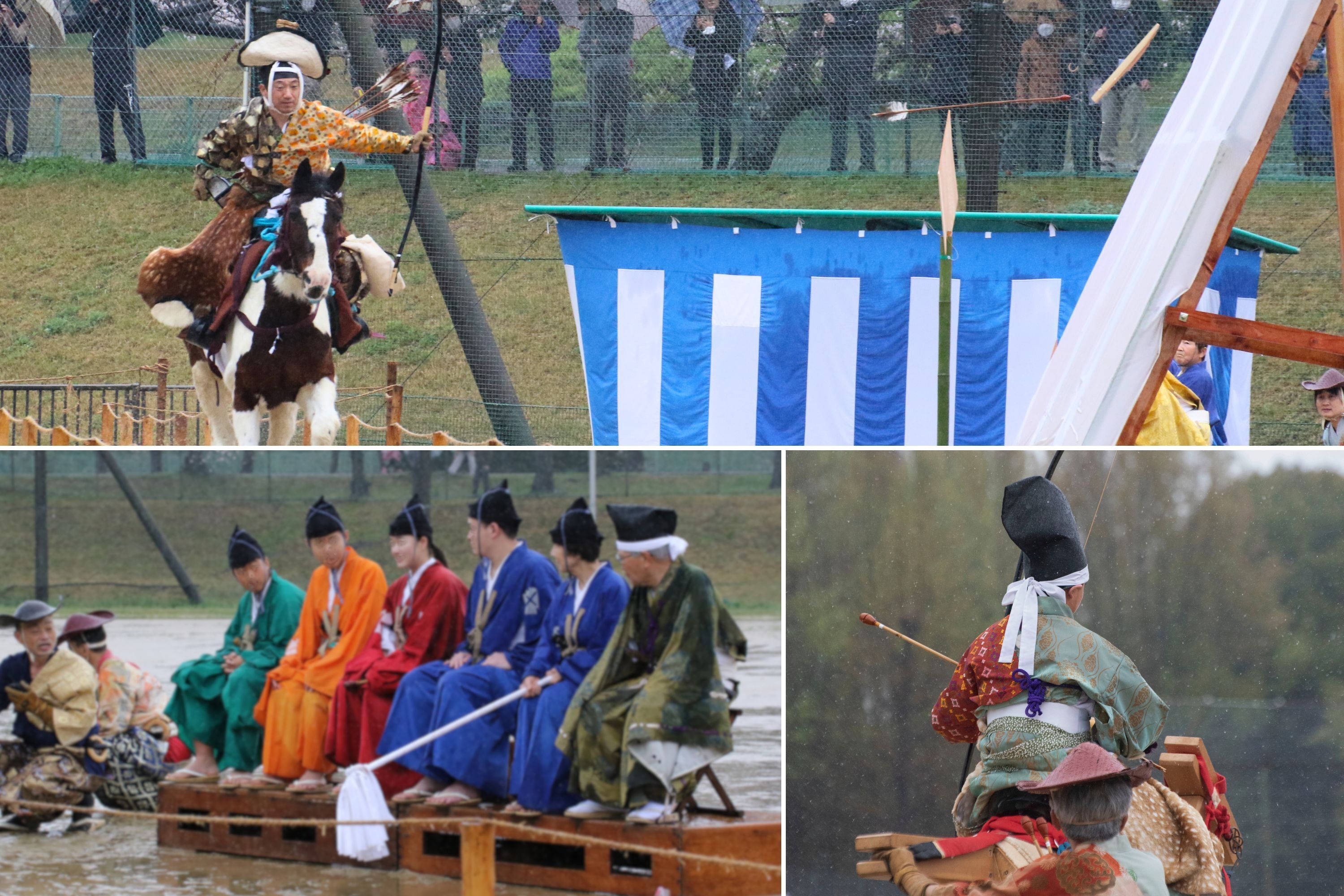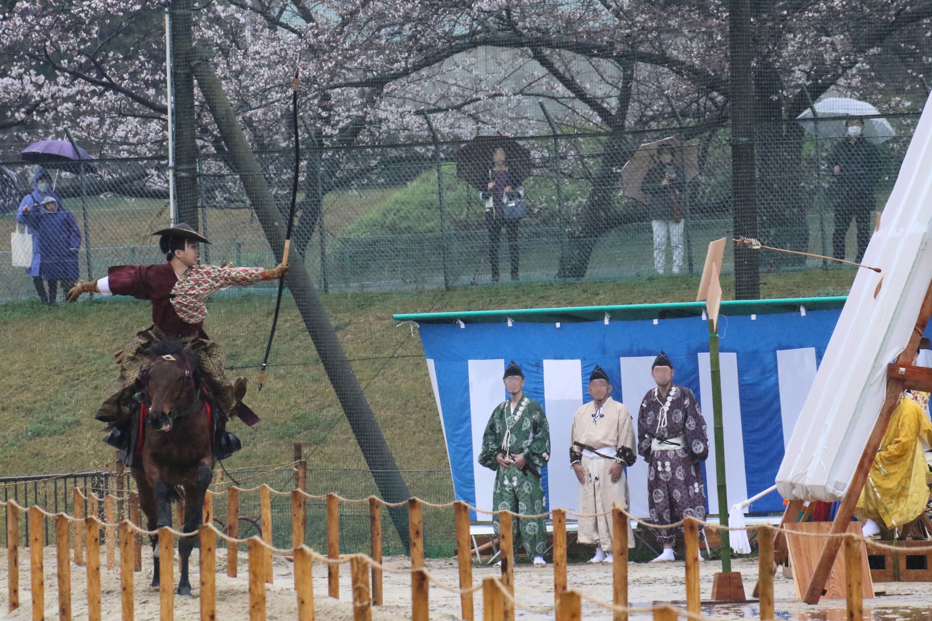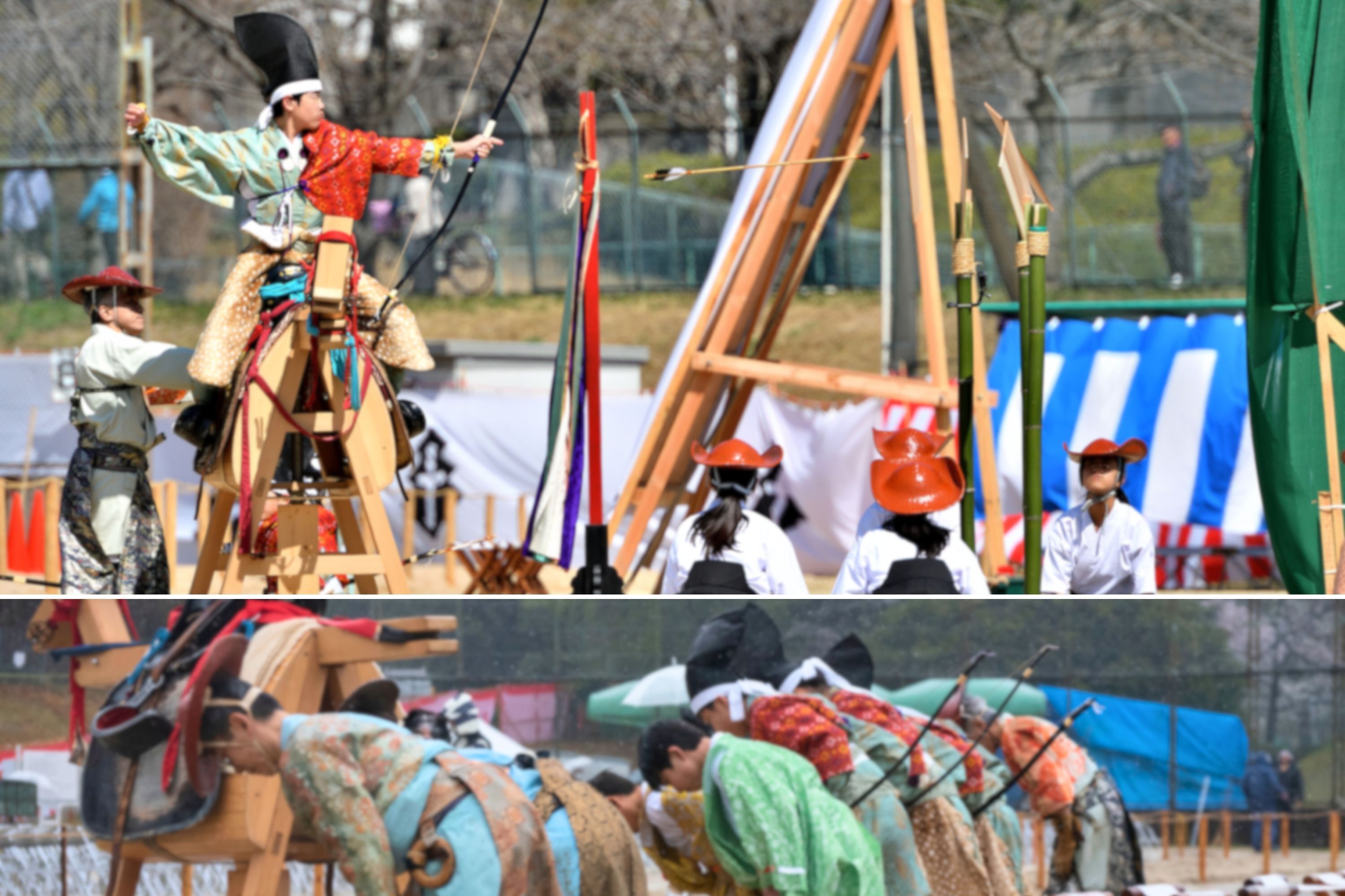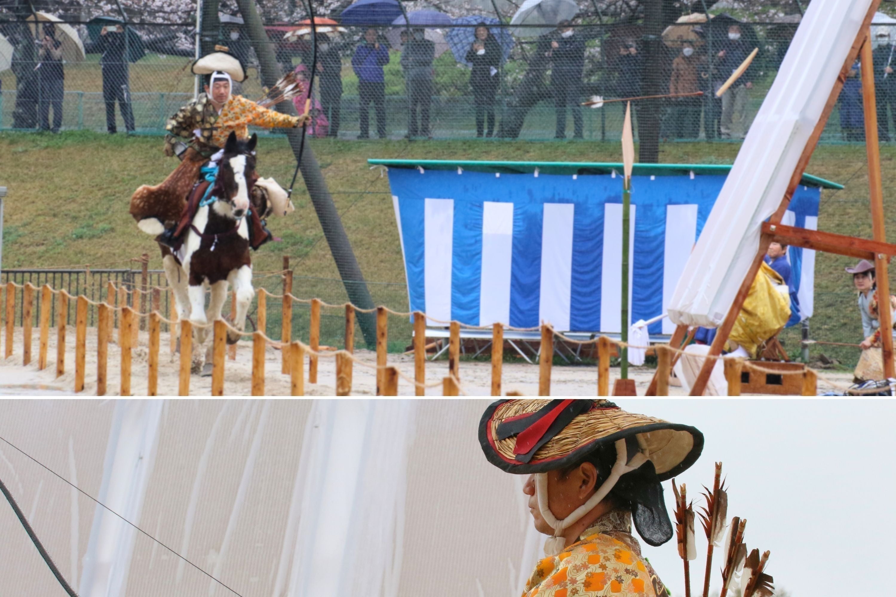鎌倉時代や江戸時代の装束に身を包んだ射手が、馬上から矢を放つ姿。その光景は、時代を越えて現れた一枚の歴史絵巻のようで、会場は静かな感動に包まれました。