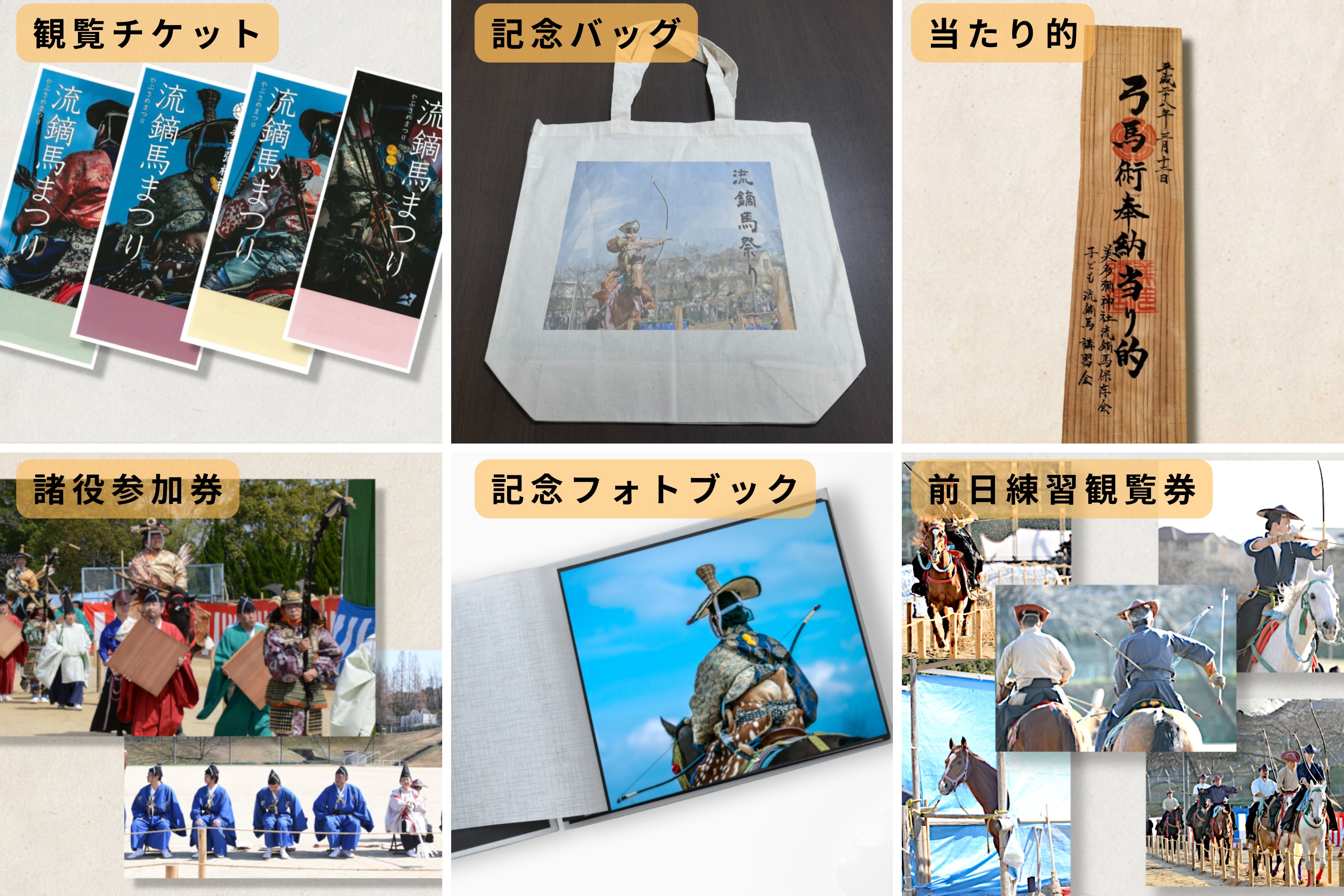 また、記憶として残し、未来へ手渡し、想いを伝える支援として、【当たり的】、【記念フォトブック】、【流鏑馬撮影エリア入場券】をご用意しました。文化継承に参加した証として、長く手元に残ります。
