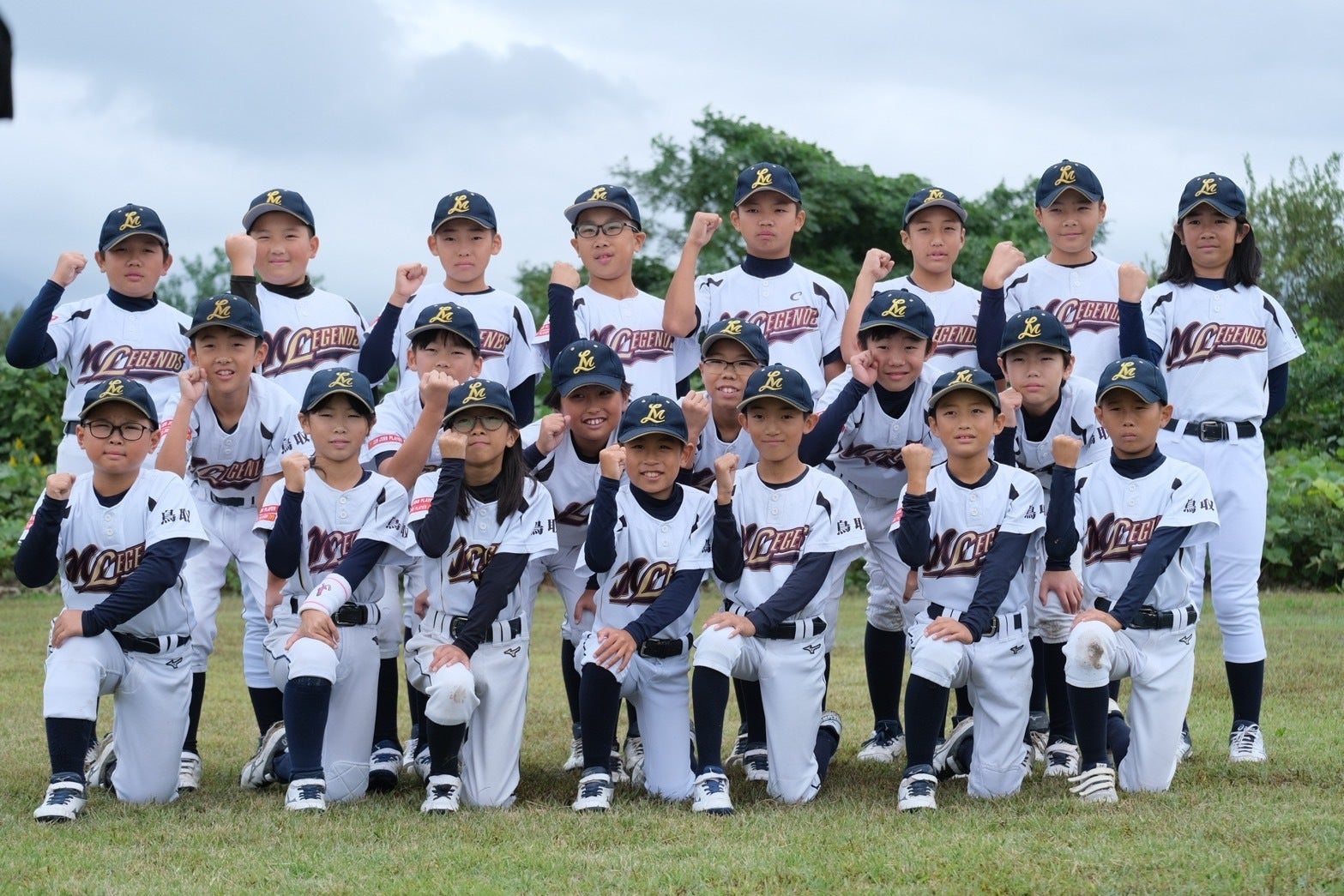 少年野球チーム『美保レジェンズ』です。私たちは鳥取県米子市の崎津イーグルス、和田チャレンジャーズ、大篠津レッドスターズの美保中学校校区の3つの小学校のチームが合併し、2015年に誕生したチームです。現在は他校の子どもたちも在籍しています。現在部員は3~6年生、総勢21名で活動しています。そのうち女子部員も2名在籍しています。