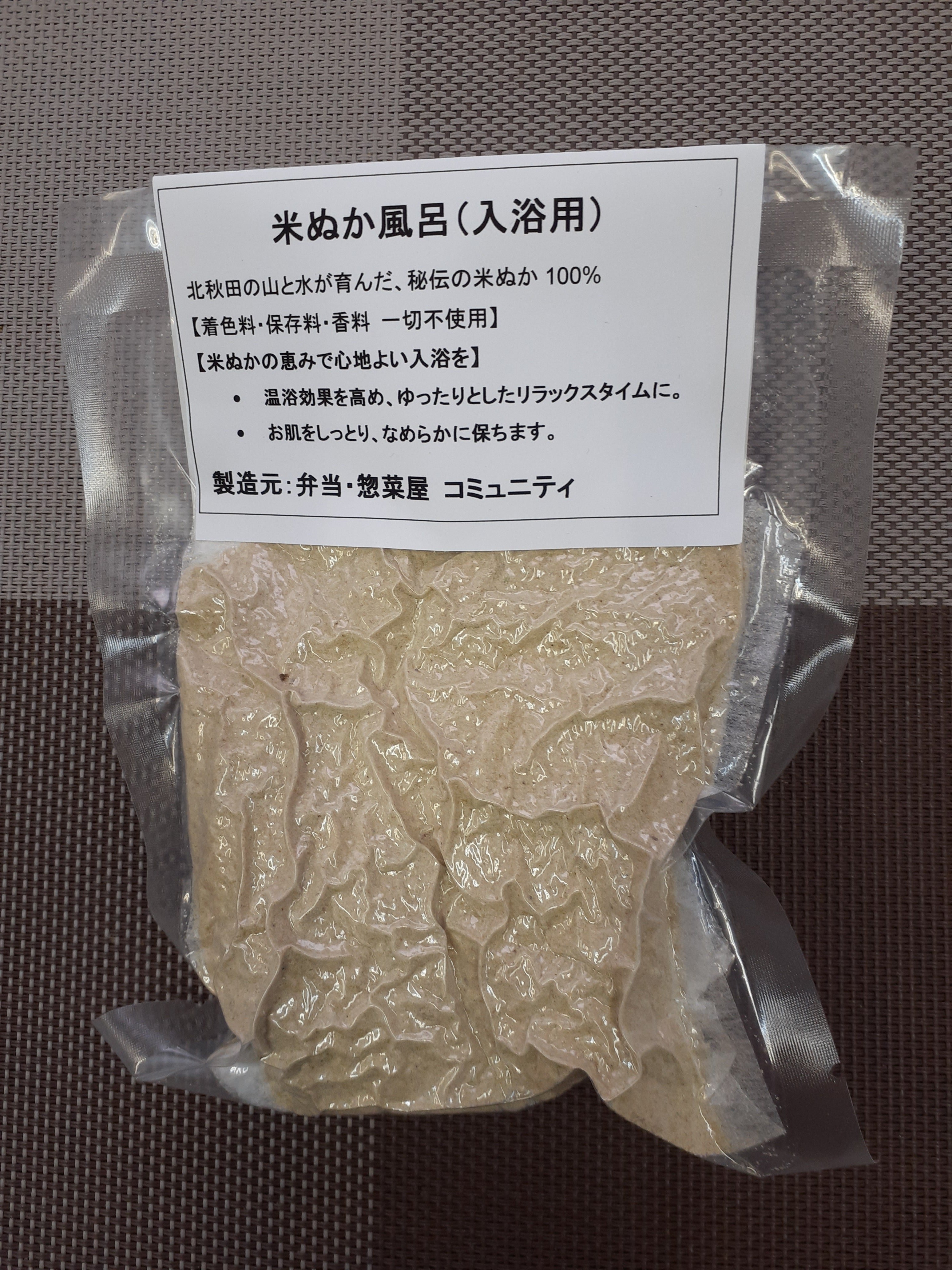 私たちの「砦」では、契約農家のあきたこまちを自ら精米しています。その際に出る、新鮮で不純物のない「生ぬか」。 これを袋に詰めてお風呂に入れ、体を優しくなでるように洗う。ただそれだけです。