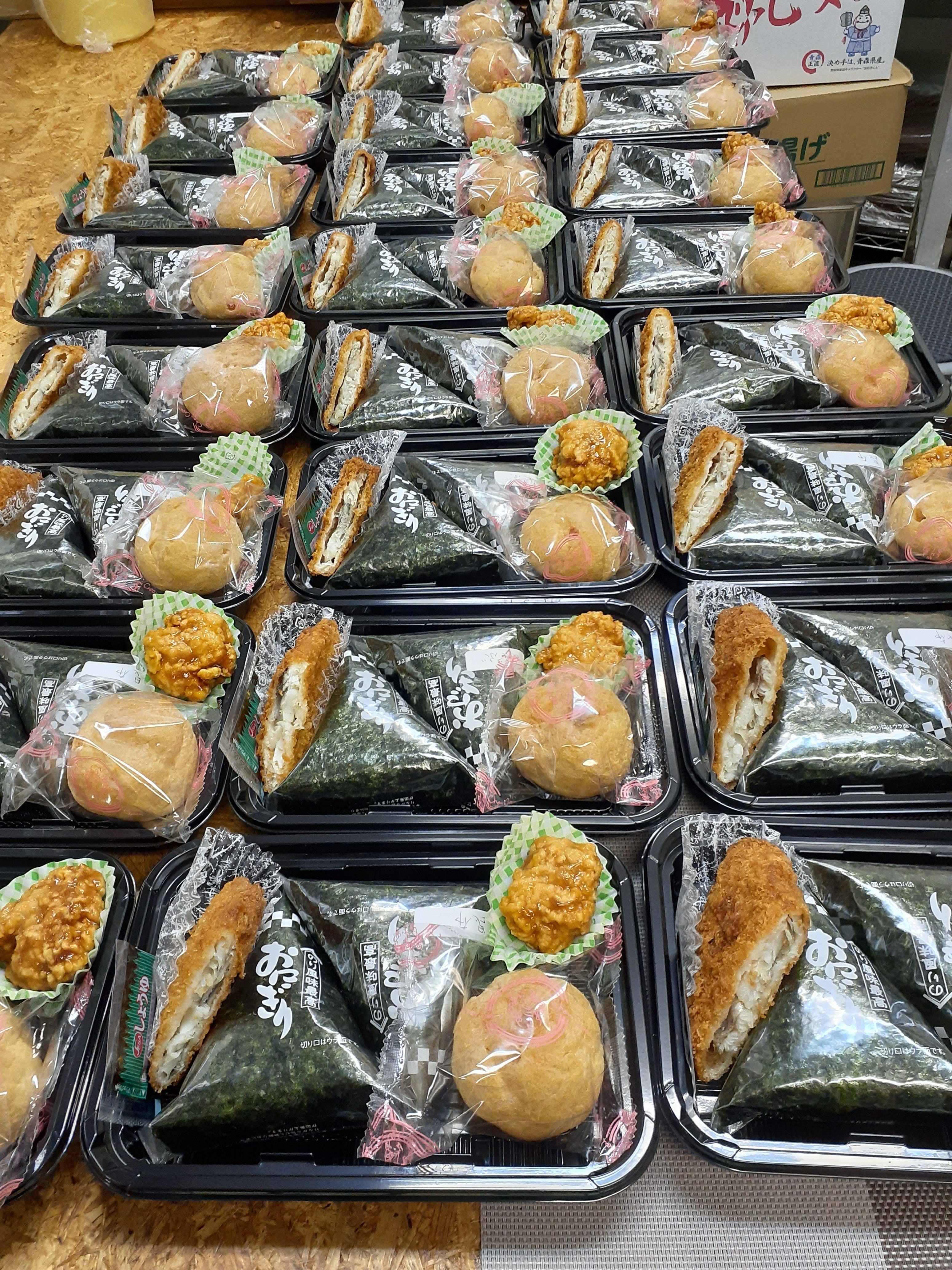 今日はおにぎり弁当を紹介します。レギュラーメニューではありませんがランキングするとナンバー2にランクされるイベントで大人気の弁当です。ホームパーティー、スポーツ大会、イベント、町内会、子ども会、会合、クリスマス、忘年会、新年会などにご利用ください。在庫があれば世界最強の伝説の山菜料理が入ります。