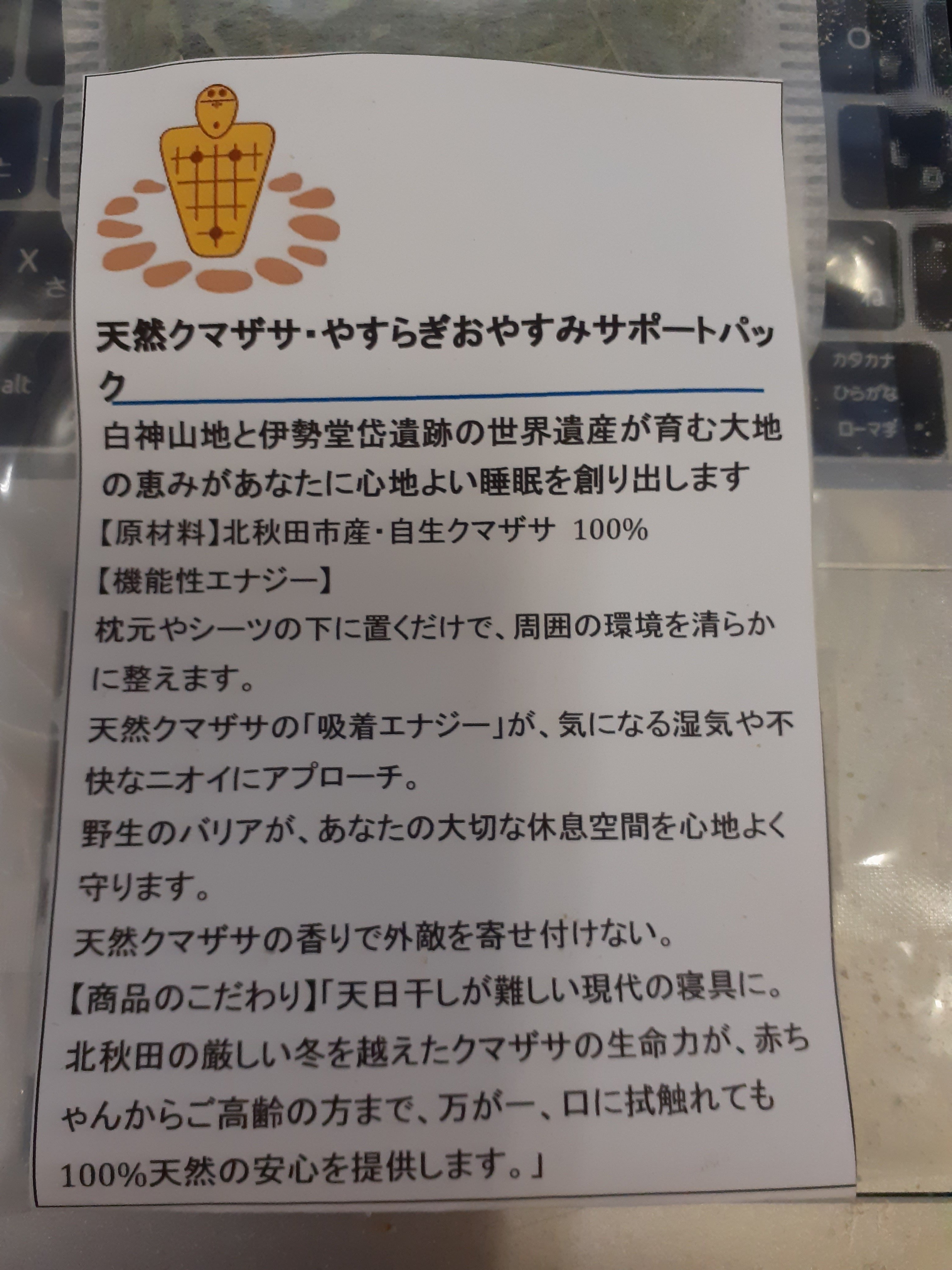 2026/01/27 10:45世界遺産が育む「眠りの守護神」天然クマザサ・やすらぎおやすみサポートパック眠れない人たちのために悪い虫も寄せ付けない、これを山から届けに来たんじゃ?おぬしだけにこっそりと教えるが仙人のわしが布団に敷き詰めて寝ている熟睡の源なのじゃ。ほかの者には教えてはならぬぞ。ほかの者に教えるとわしがもうかってしまうからの。 世界遺産の恵み: 白神山地・伊勢堂岱の天然ササ100%! 究極の安心: 化学薬品ゼロ!赤ちゃんやペットの寝具にも。 置くだけ多機能: 天然の香りでリフレッシュ&クリーン!【絶倫プライス】1個:300円【一番人気】6個セット:1500円白神山地と伊勢堂岱遺跡の世界遺産が育む大地の恵みがあなたに心地よい睡眠を創り出します【原材料】北秋田市産・自生クマザサ 100%【機能性エナジー】枕元やシーツの下に置くだけで、周囲の環境を清らかに整えます。天然クマザサの「吸着エナジー」が、気になる湿気や不快なニオイにアプローチ。野生のバリアが、あなたの大切な休息空間を心地よく守ります。天然クマザサの香りで外敵を寄せ付けない。【商品のこだわり】「天日干しが難しい現代の寝具に。北秋田の厳しい冬を越えたクマザサの生命力が、赤ちゃんからご高齢の方まで、万が一、口に拭触れても100%天然の安心を提供します。」 もっと見る