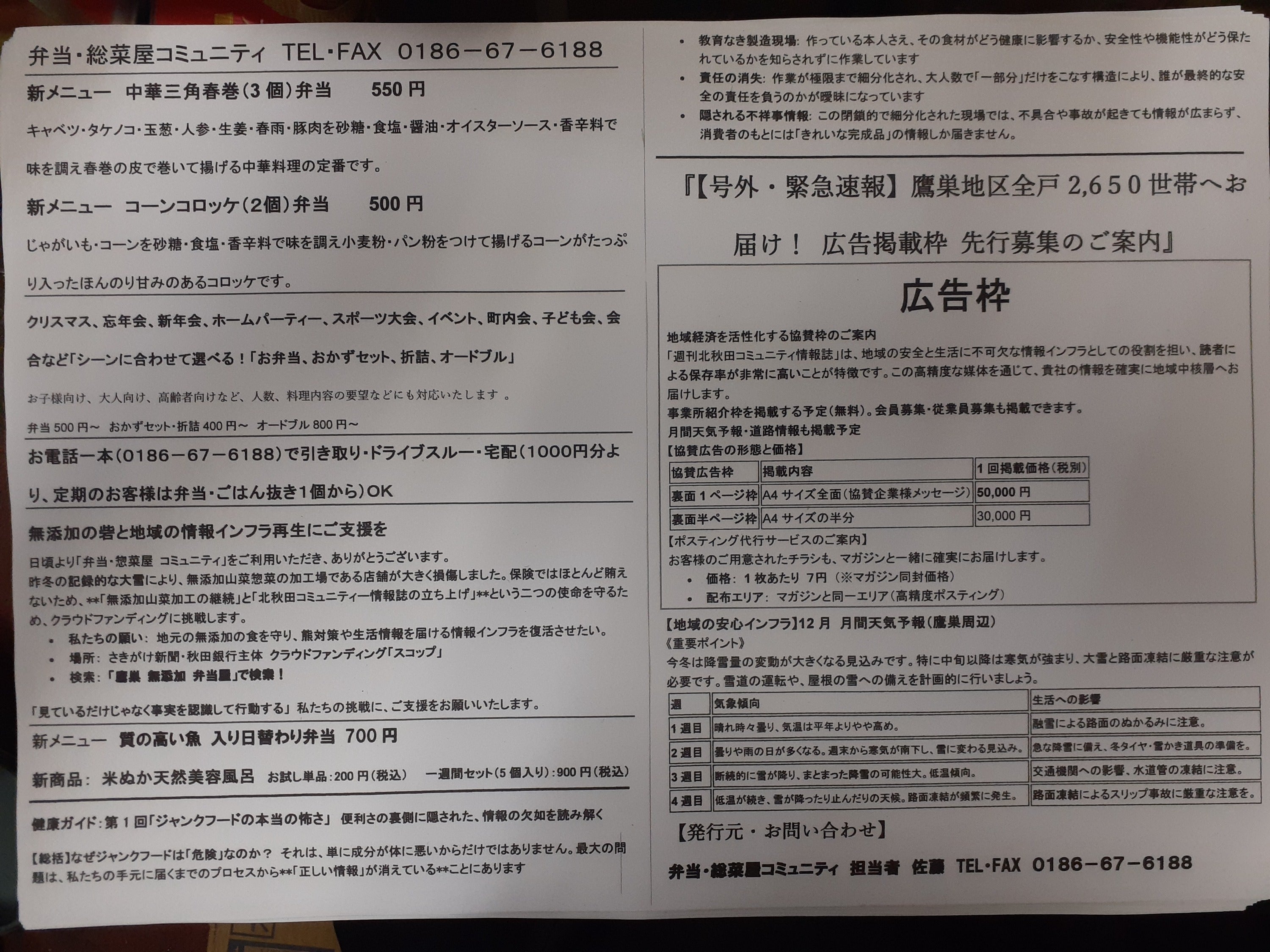 秋田県北秋田市で「弁当・惣菜屋 コミュニティ」を営む佐藤功也です。私は「今の日本の情報の在り方はおかしい」という強い危機感を持っています。