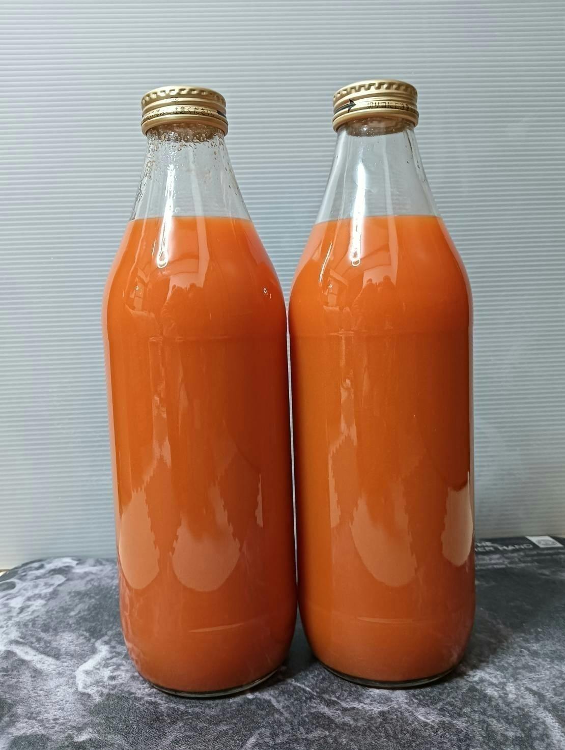 どろっとした丸ごと搾りの人参ジュースをリターン品としてご提供いたします。代々つないできた自家採種の人参を使用し、賞味期限を延ばすために鹿児島のブランド果実である辺塚だいだいの果汁を加えております。ジュースとして飲むのはもちろん、ドレッシング等の料理への活用も可能です。