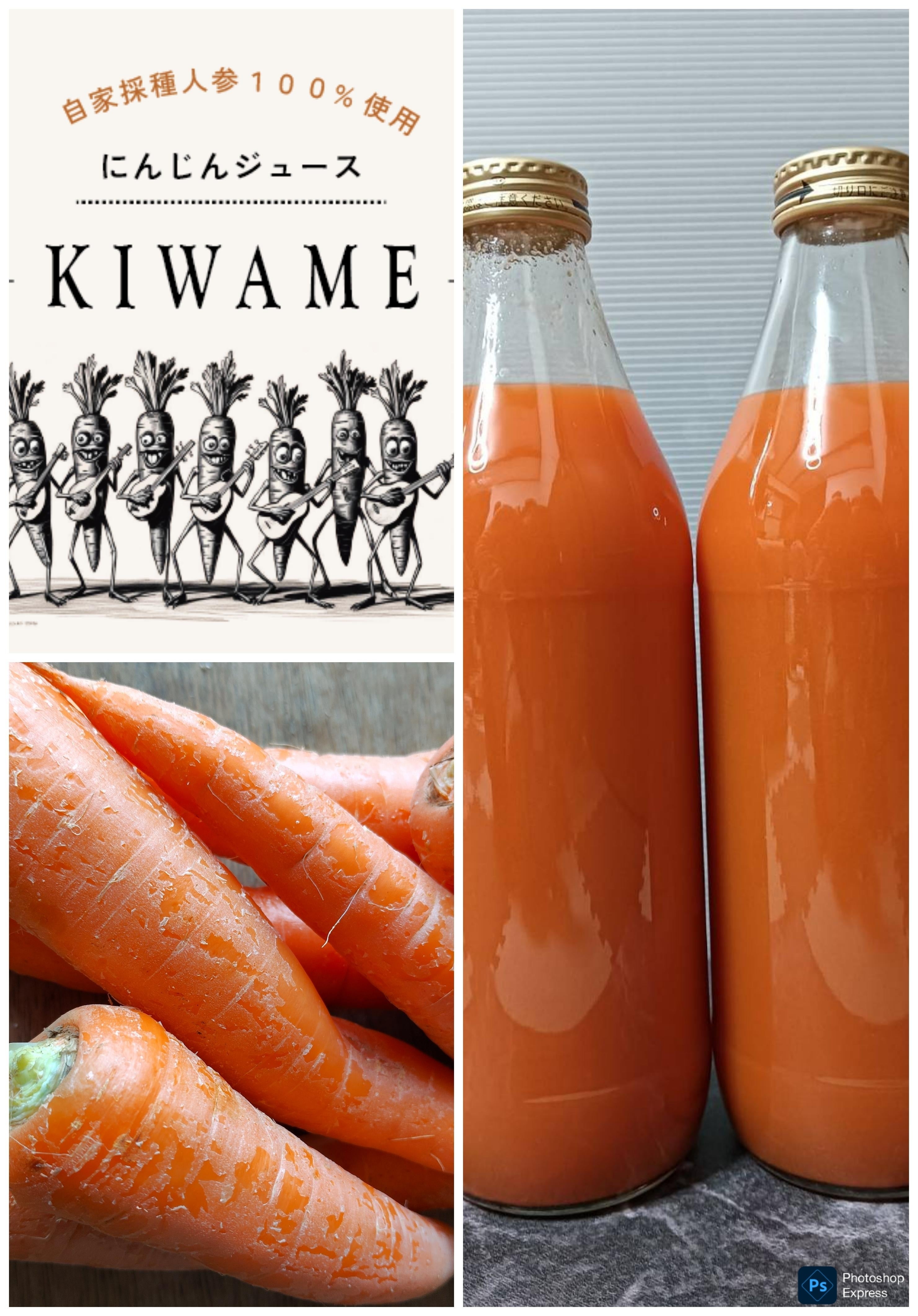 昨年は表ラベルのデザインまでできなかったのですが、今回製造する人参ジュースは表ラベルのデザインも自ら手がけまして、商品としての魅力がぐっと上がる仕上がりになるかと思います。下の画像が表ラベルのデザインになります。