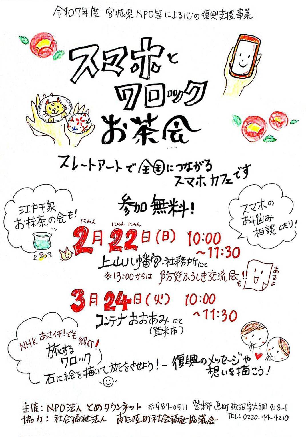 「スマホとワロックお茶会」は、令和7年度宮城県NPO等による心の復興支援事業として、昨年8月から月に1回、南三陸町で続けている取り組みです。