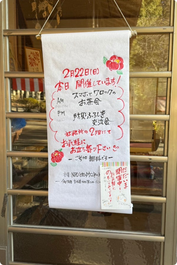 2月22日、上山八幡宮社務所にて「スマホとワロックお茶会&防災ふろしき交流会」 を開催しました。