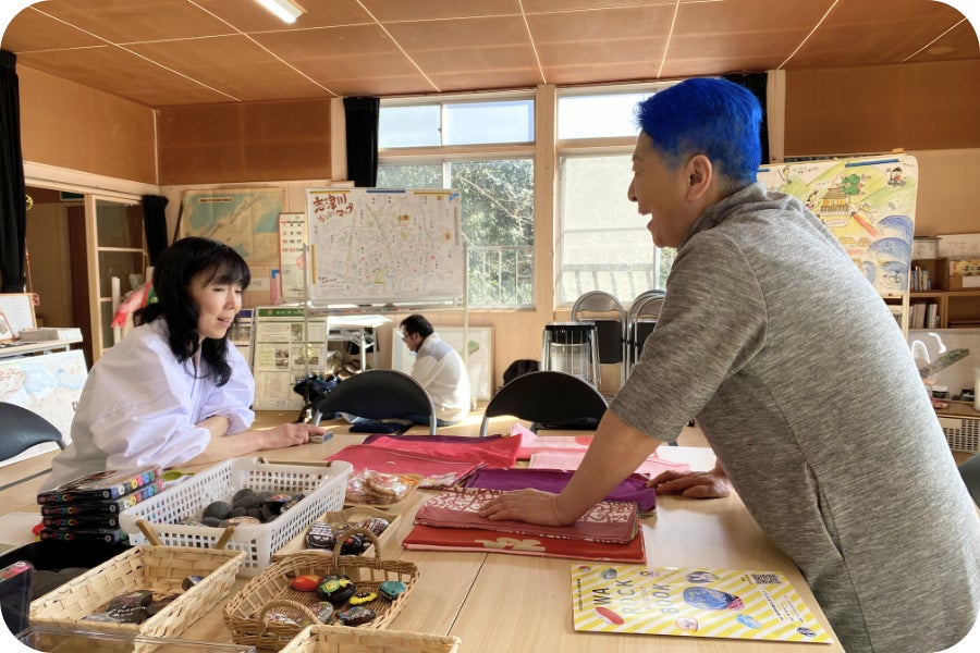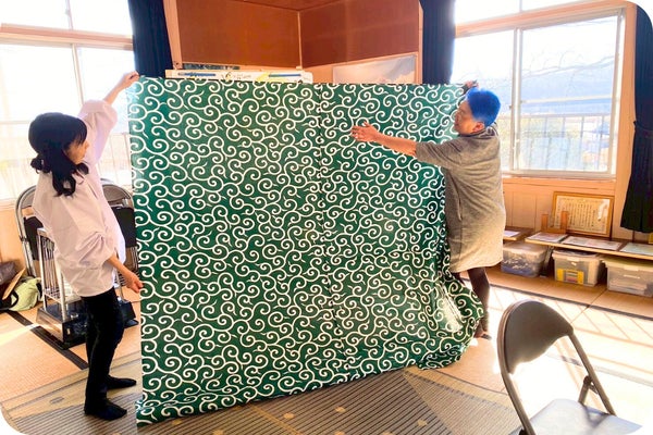 「この風呂敷は“津波から逃げて”というメッセージを伝えるもの。だから、広げて見てもらうことが大事なんです」