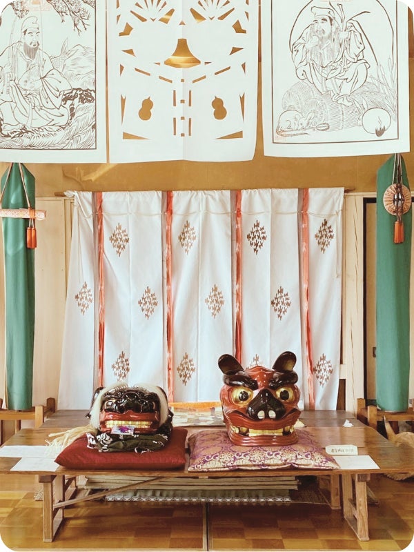 社務所の2階、キリコで清められた場に鎮座したお獅子さま。