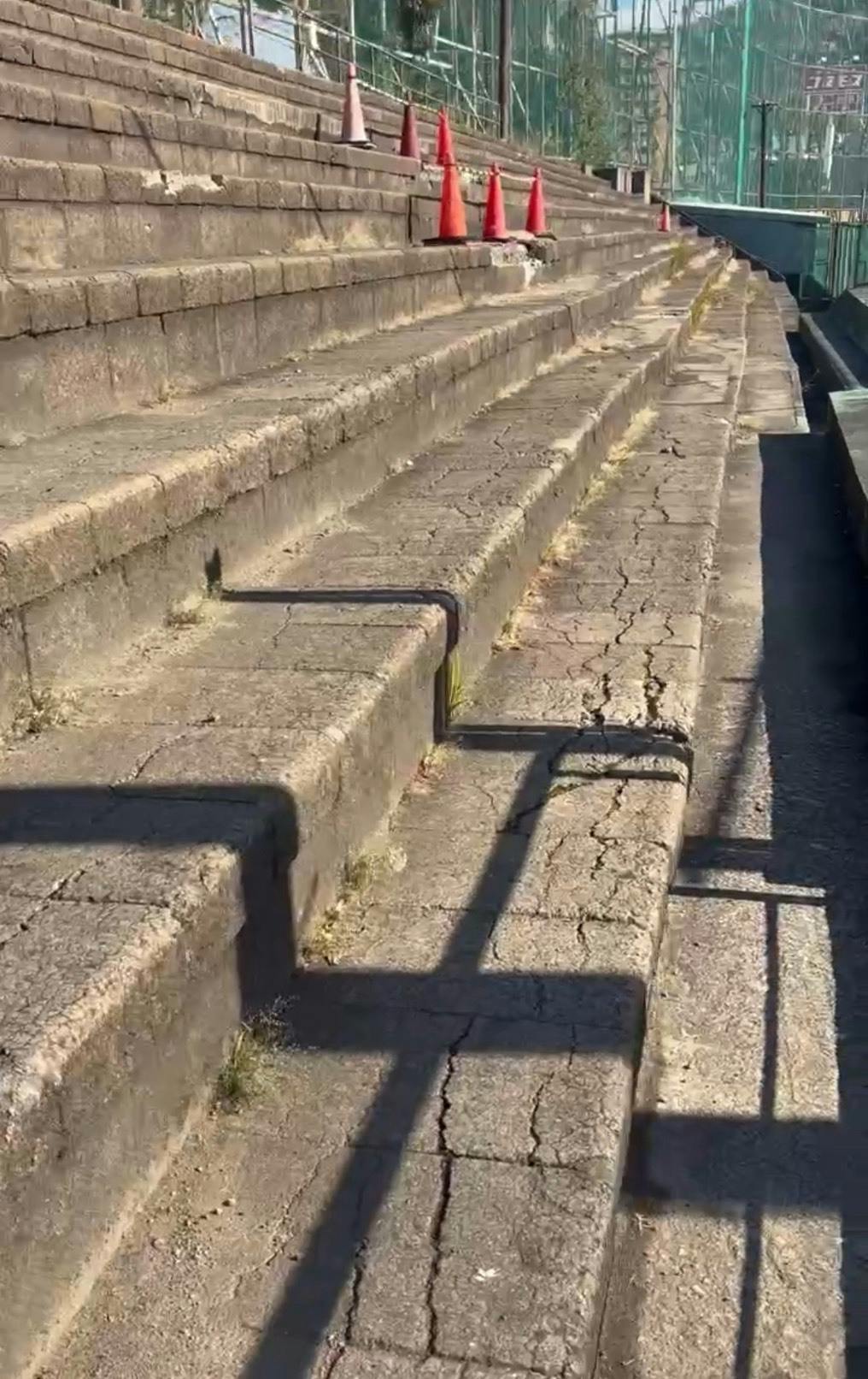 先日のクレイジーボールでの開催での芝の荒れ、観客席や