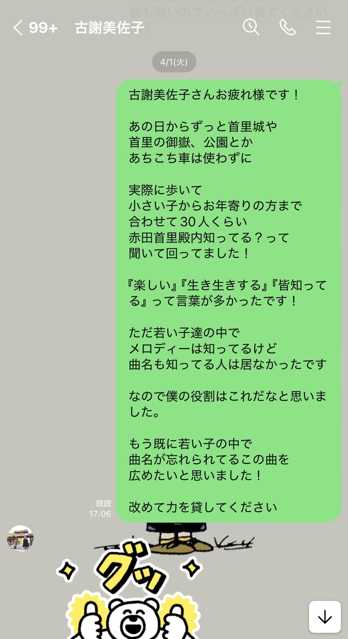 そしたら古謝さんから