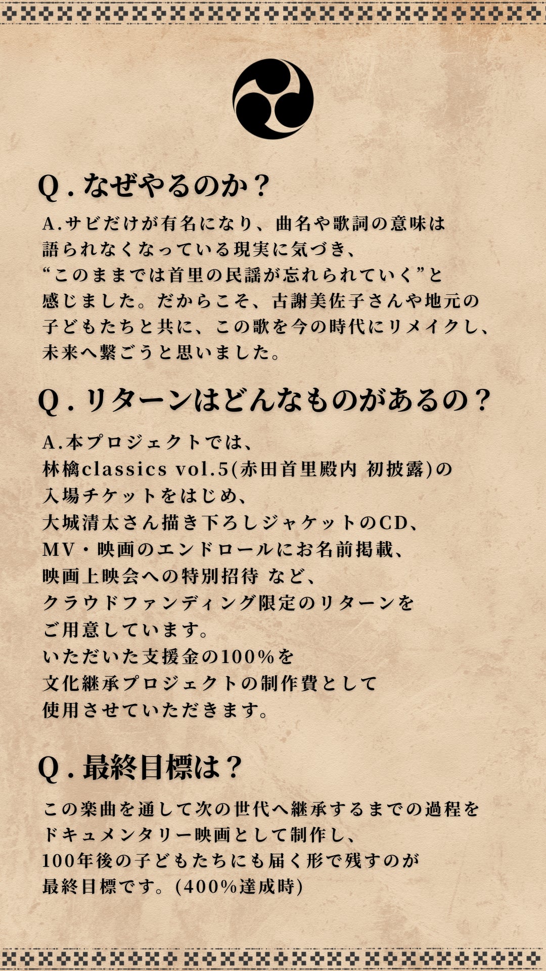 どうか、この挑戦に力を貸してください。あなたの支援が、文化を未来へ残す証になります。