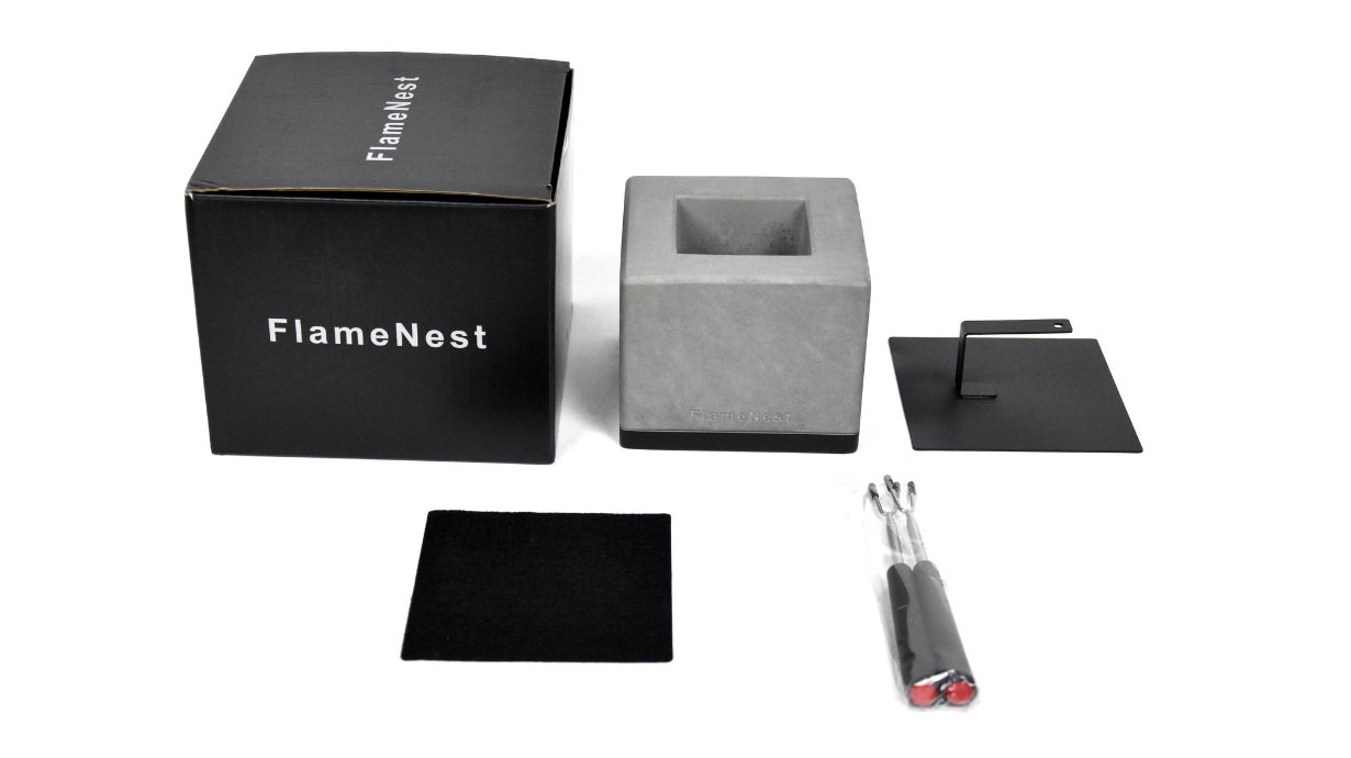 FlameNestは、燃料を注いで火を灯すだけ。炭を起こす必要もなく、使用後の灰や煤の処理はありません。