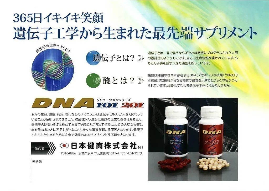 私たちは、DNA核酸を主成分とした免疫力強化をコンセプトに掲げ、健康食品業界に革新をもたらすことを目指しています。理学博士である的場民治博士と共同で開発したサプリメントを販売しており、その科学的な裏付けと高い品質を誇りに思っています。これまで多くのお客様にご愛用いただいてきましたが、今後もさらに多くの方にその効果を実感していただきたいと願っています。