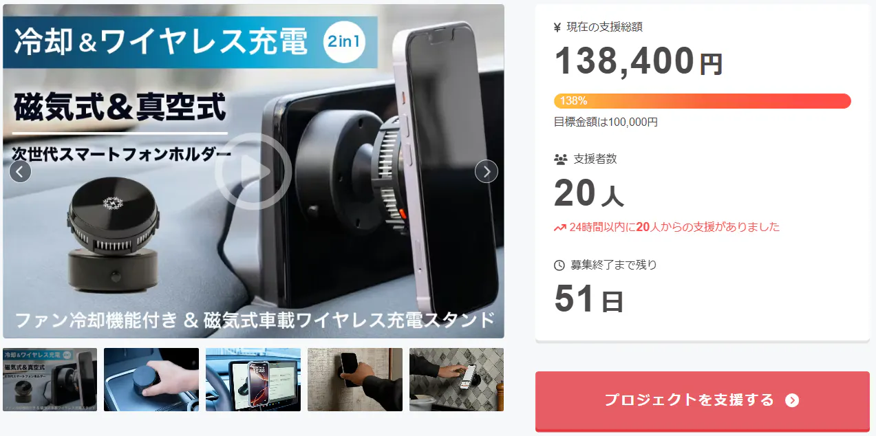 この度は「真空吸着×冷却ワイヤレス充電×360°回転で快適操作を叶えるスマホスタンド」に支援頂き誠にありがとうございます!