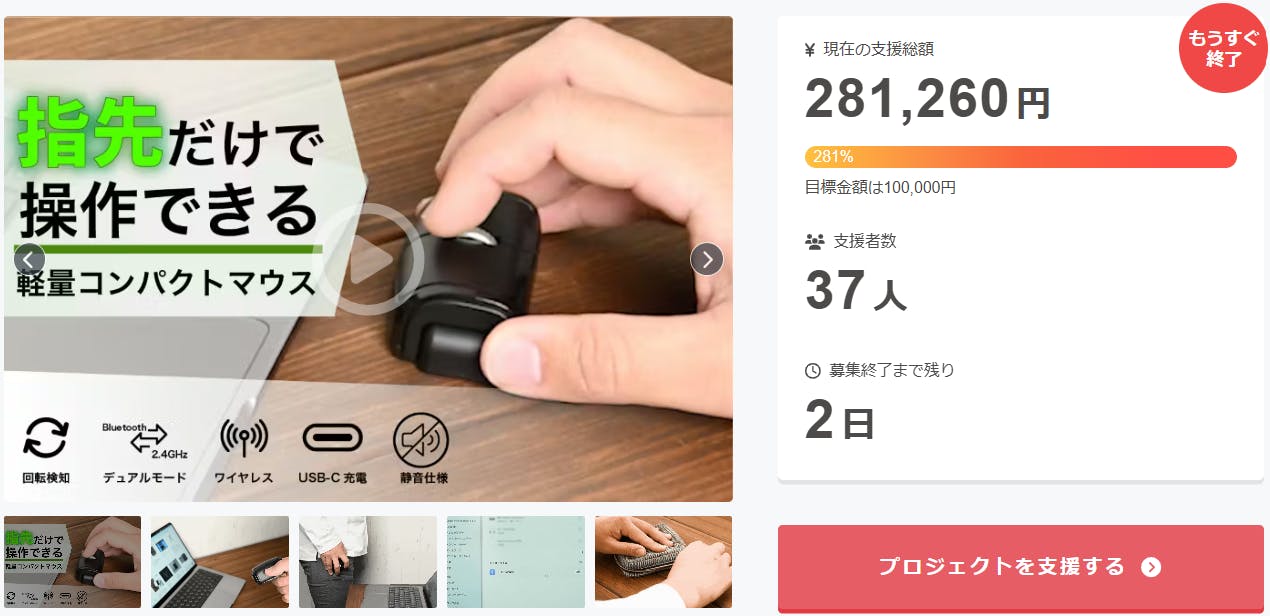 2026/01/29 12:26ご支援者様、超軽量30g!手に優しく長時間作業も快適なコンパクトワイヤレスマウスにご興味をお持ちいただきありがとうございます。お陰様で、開始から支援総額28万円達成することができました!終了までわずか 2 日となります。<軽量でコンパクト、独特な形状で手にかかる負担を軽減し長時間でも使えるミニマウスです。Bluetooth と 2.4GHz のデュアル接続に対応し、さまざまなデバイスで安定して使用できます。>プロジェクト終了後、「超軽量30g!手に優しく長時間作業も快適なコンパクトワイヤレスマウス」をCampfire特別価格で入手することはできなくなりますので、ご支援がまだの方、追加支援をご検討の方はお急ぎくださいますようお願い申し上げます。ご興味のある方、ぜひ支援お願い致します。https://camp-fire.jp/projects/906241/viewBrightチームは、当プロジェクトをもっと多くの方に知っていただきたいと考えております。よかったら、FacebookやTwitter等のSNSでのシェア・拡散をお願い致します。#miniマウス #brightdiyどうぞよろしくお願い致します。Brightチーム もっと見る