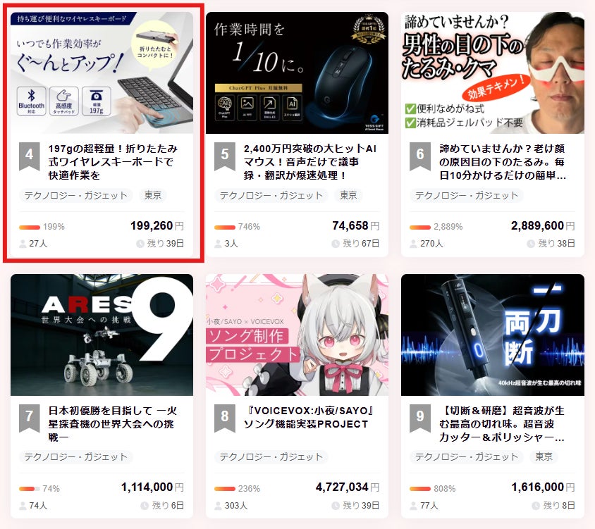 本日のCampfireランキングテクノロジ.ガジェット部門で 4 位に入賞することが出来ました!