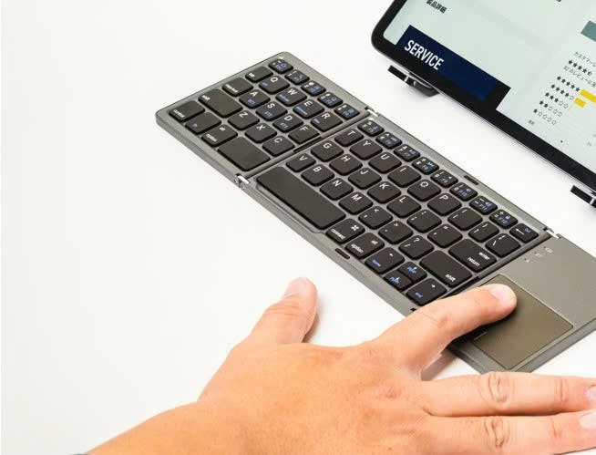 折りたたみキーボードはミニサイズでありながら、操作性に妥協しない設計が特徴です。テーブルの上だけでなく、ソファやベッド、外出先でもすぐに使用でき、思い立った瞬間にゲームを始めることができます。画面はタッチ操作、細かい操作や入力はキーボードで行うというハイブリッドな使い方により、プレイの自由度とスピードが大きく向上します。コンパクトでありながら、長時間使用しても疲れにくい点も魅力のひとつです。