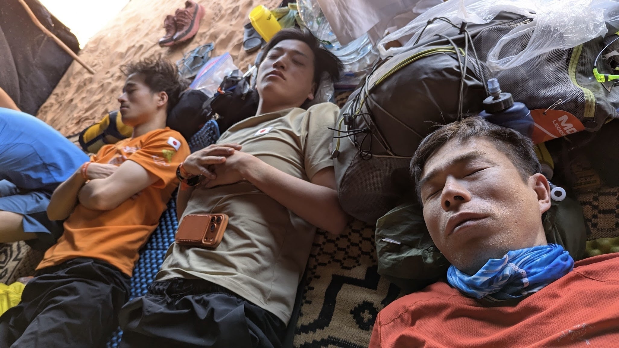 夜は20時ごろには真っ暗になるため、翌日のレースに備えてすぐに寝袋を敷いて就寝する日々でした。