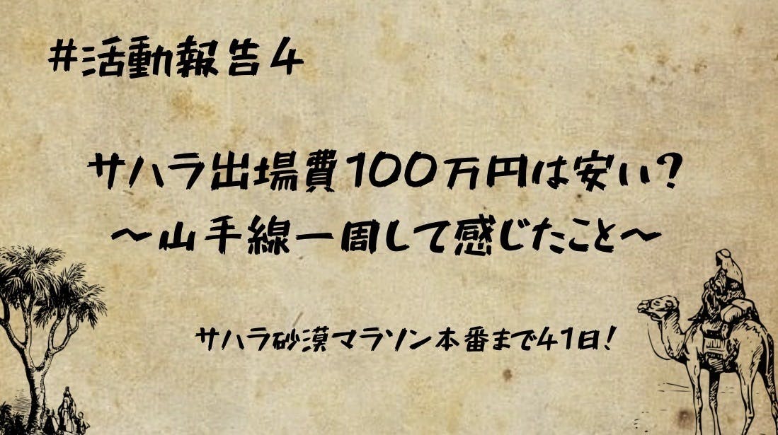 活動報告#4【クラファン残り1週間!】サハラ出場費100万円は安い?〜山手線一周をして感じたこと〜