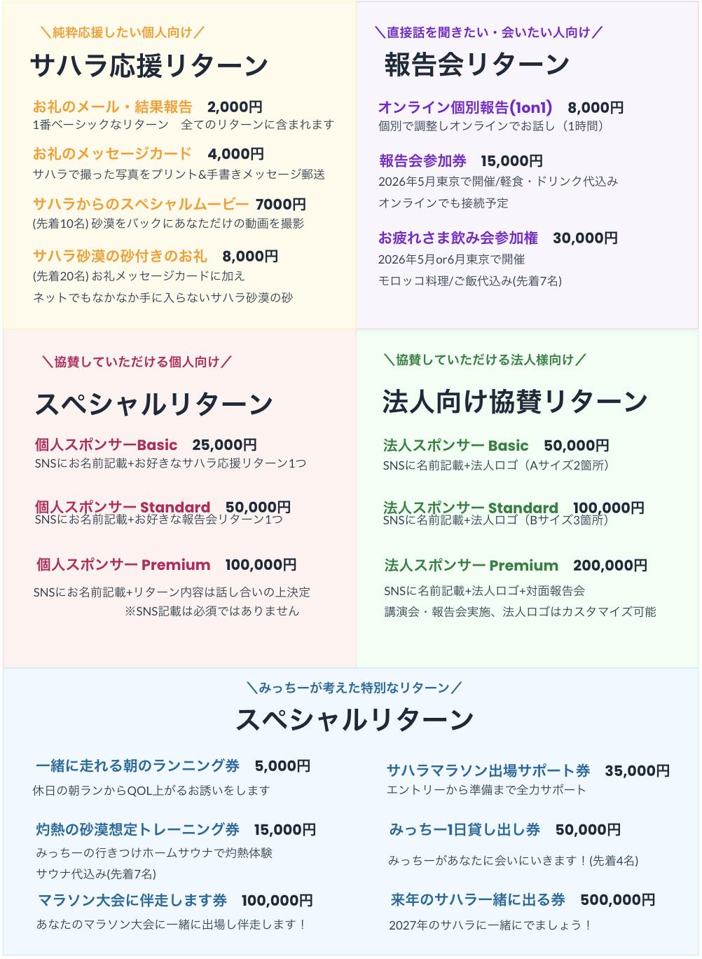 支援いただいたお金は、サハラ砂漠マラソンに最低限必要な費用、約120万円(エントリー費:68万円 交通費:27万円 装備・食料品:20万円)の補填に使わせていただきます。