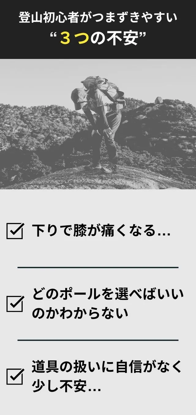 実際、登山初心者の約6割が「下山時の膝の痛み」を経験していると言われています。