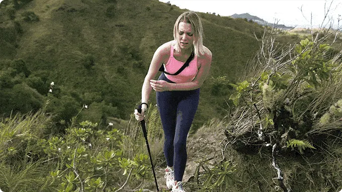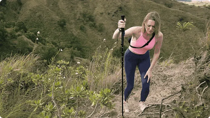 通常のトレッキングポールは衝撃を吸収する機構がないため、わずかな衝撃でも手首、肘、肩に直接伝わり、最終的には使用中に身体に負担が生じてしまいます。