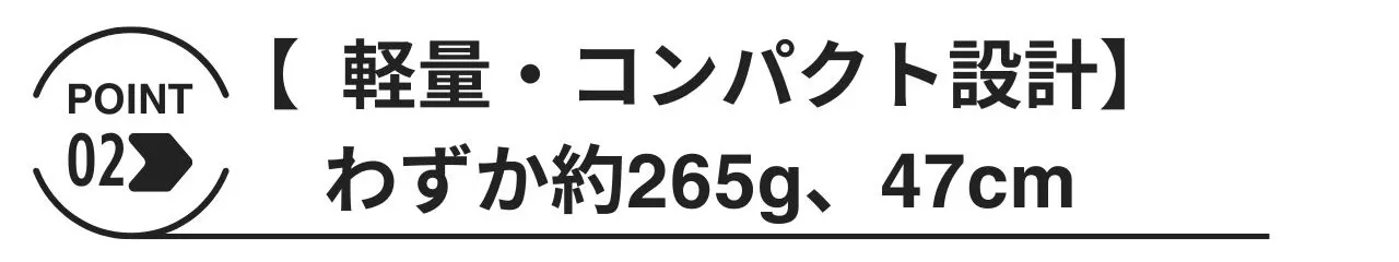 Heritage 1.0は、Lサイズで約265g(1本の重さ)、Mサイズで約255g(1本の重さ)と軽量で、収納時は47cmになります。