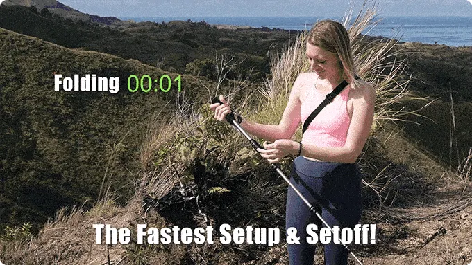 通常のトレッキングポールは使いこなすのが難しいです。ポールの調節に、レバーを回してロックとロック解除を切り替え、その都度ポールを折りたたんだり、広げたり、捻ったりといった、複数の手順とプロセスが必要です。