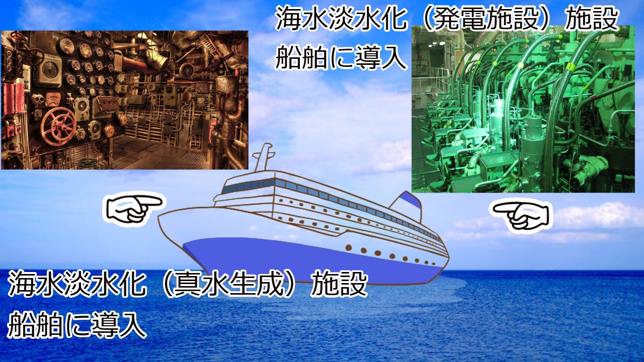 この矛盾を見たとき、海水を活用した事業ができないだろうかと思いついたのです。海の上で、大型船舶を使って海水から真水を作る。そして氷も製造する。海で働く水産業の方々や船舶会社の皆さんは、限られた水で作業をされています。そんな方々の縁の下の力持ちになりたいと考えました。
