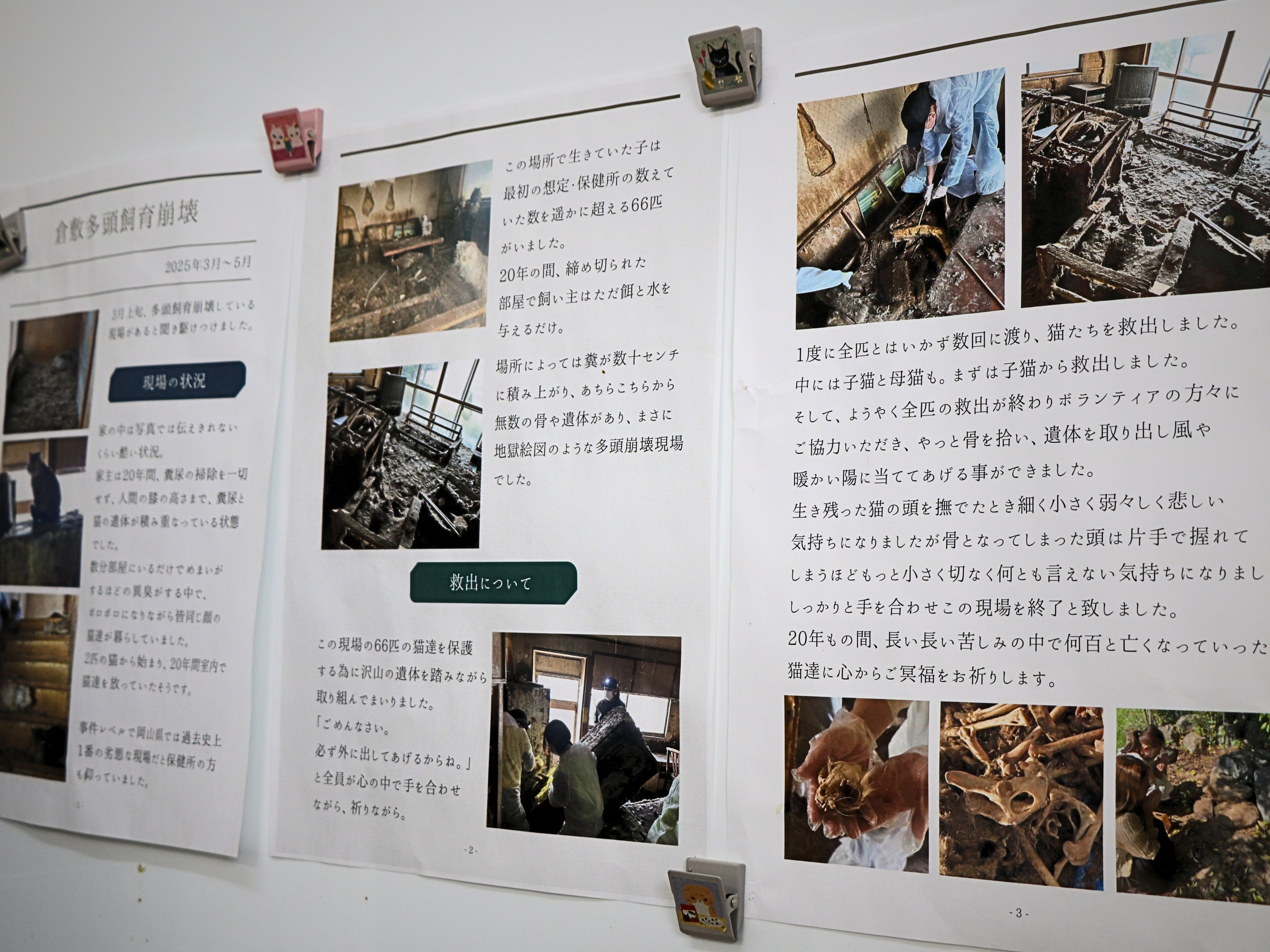 「毎日のように一般の方からの保護依頼や相談があり、活動は広範囲に及びます。2025年8月末には倉敷市の大規模な多頭飼育崩壊現場へ向かいました。