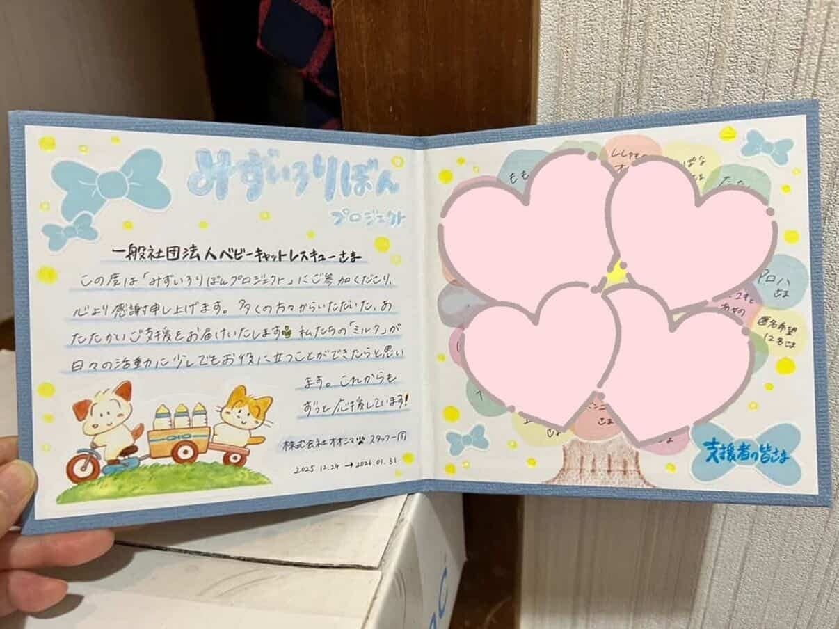 一般社団法人ベビーキャットレスキュー様からミルクが無事に到着したとのご連絡をいただきました♪