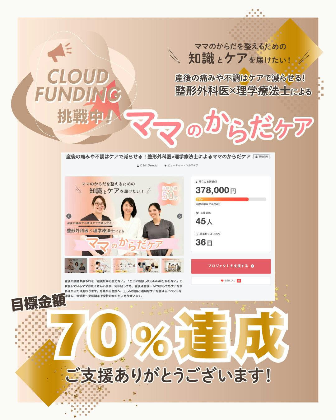 2026/01/12 18:03みなさまのご支援のおかげで、目標額の70%まで到達することができました!本当にありがとうございます。現在ご支援くださっているのは、私たちの活動を以前から見守ってくださっている、友人・同僚・親族など身近な方々が中心です。クラウドファンディングに挑戦する中で、発信の難しさを感じたり、時に厳しいご意見に落ち込んでしまうこともあります。それでも、みなさまから届くご支援やメッセージが原動力となり、ここまで歩みを進めることができています。そしてここ数日、企業枠でのご支援も立て続けにいただきました。企業枠では、私たちが現地へ伺い「出張講座」を実施することをリターンとさせていただいています。このたび、鳥取から企業枠でのご支援をいただきましたので、こもれびmedic、鳥取に伺います!鳥取のママたちのサポートをさせていただけること、今からとても楽しみです。目標達成に向け、最後まで全力で駆け抜けますので、引き続きご支援・シェアで応援いただけましたら幸いです。どうぞよろしくお願いいたします!instagramはこちら もっと見る