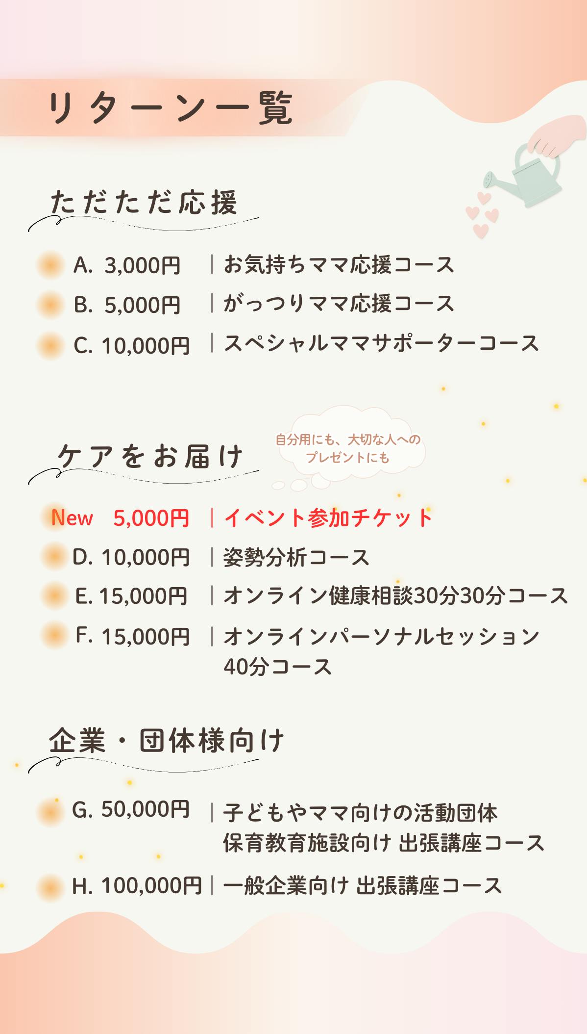 悩んでいる方には、リターンを通じて「からだと心を整える知識・ケア」をしっかり届けたい。