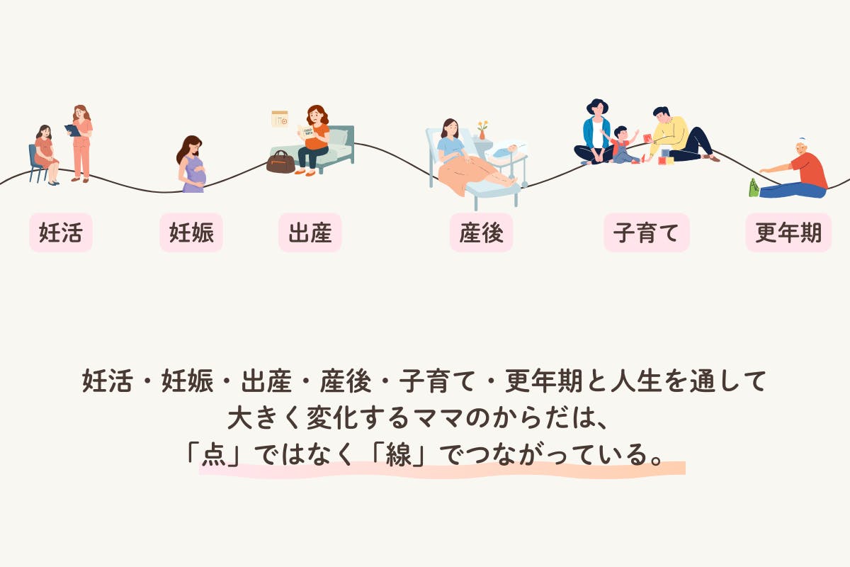 また、妊活・妊娠・出産・産後・更年期と人生を通して大きく変化するママのからだは、「点」ではなく「線」でつながっています。
