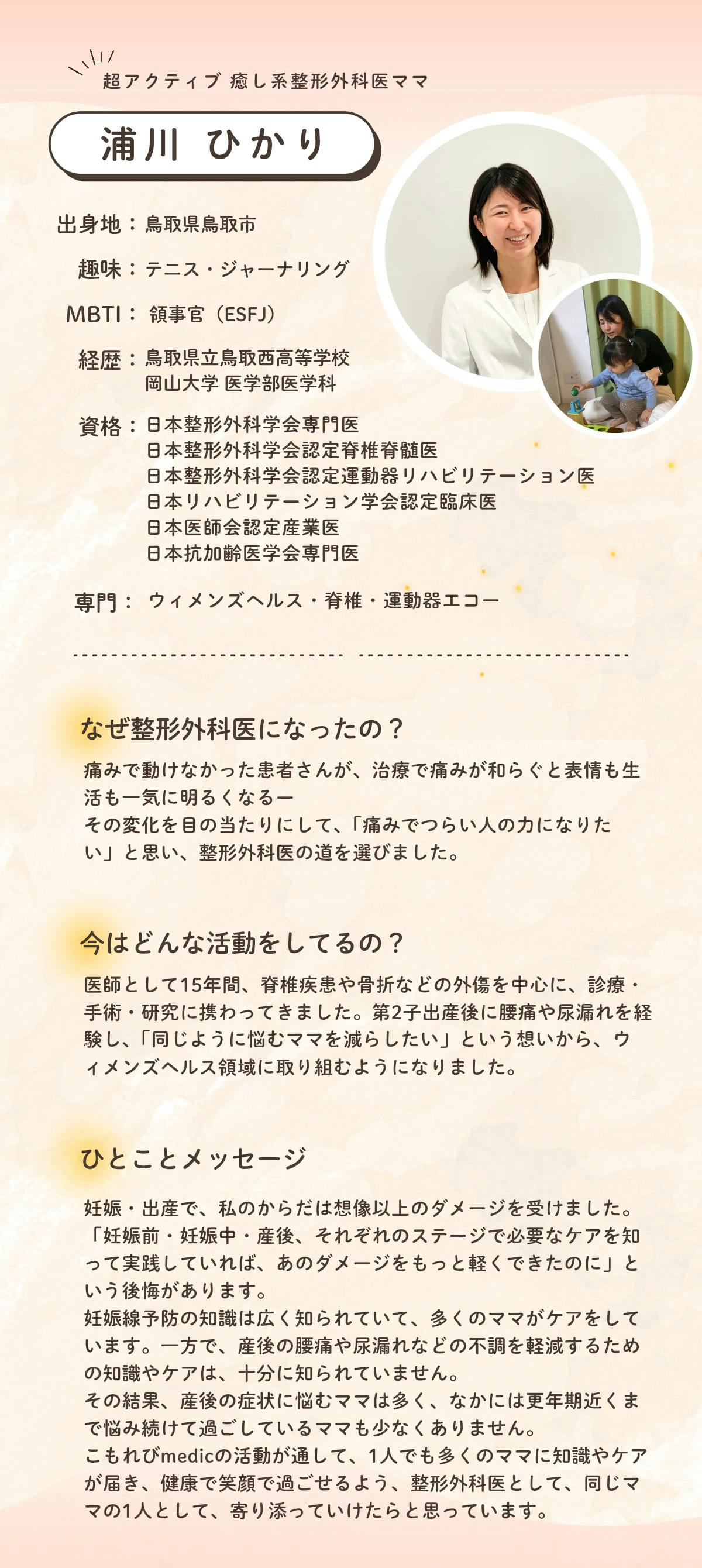 浦川先生は当院整形外科でご勤務いただいており、患者さんの声に丁寧に耳を傾け、やさしく寄り添う信頼できる整形外科医です。