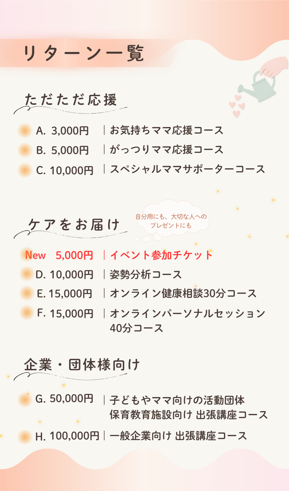 悩んでいる方には、リターンを通じて「からだと心を整える知識・ケア」をしっかり届けたい。