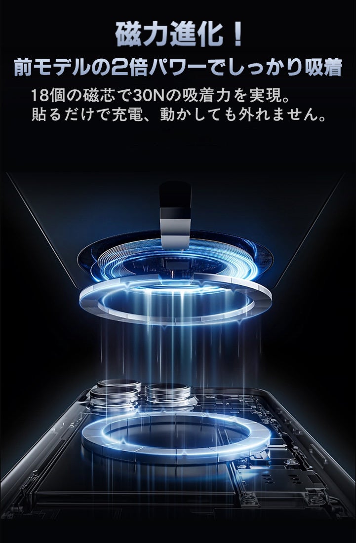発熱しやすいワイヤレス・マグネット充電も安心。二重グラフェン層とAI温度管理機能により、温度上昇を抑制し、安全性と効率、製品寿命を大幅に向上させました。