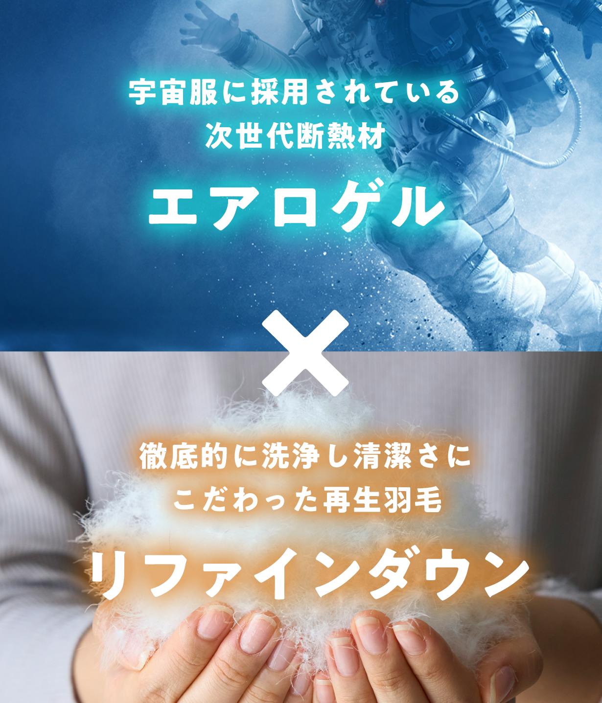 宇宙服にも使われている抜群の断熱性を誇る「エアロゲル」で外側の冷気をシャットアウトし、ふとん内側の暖気を逃がしません。