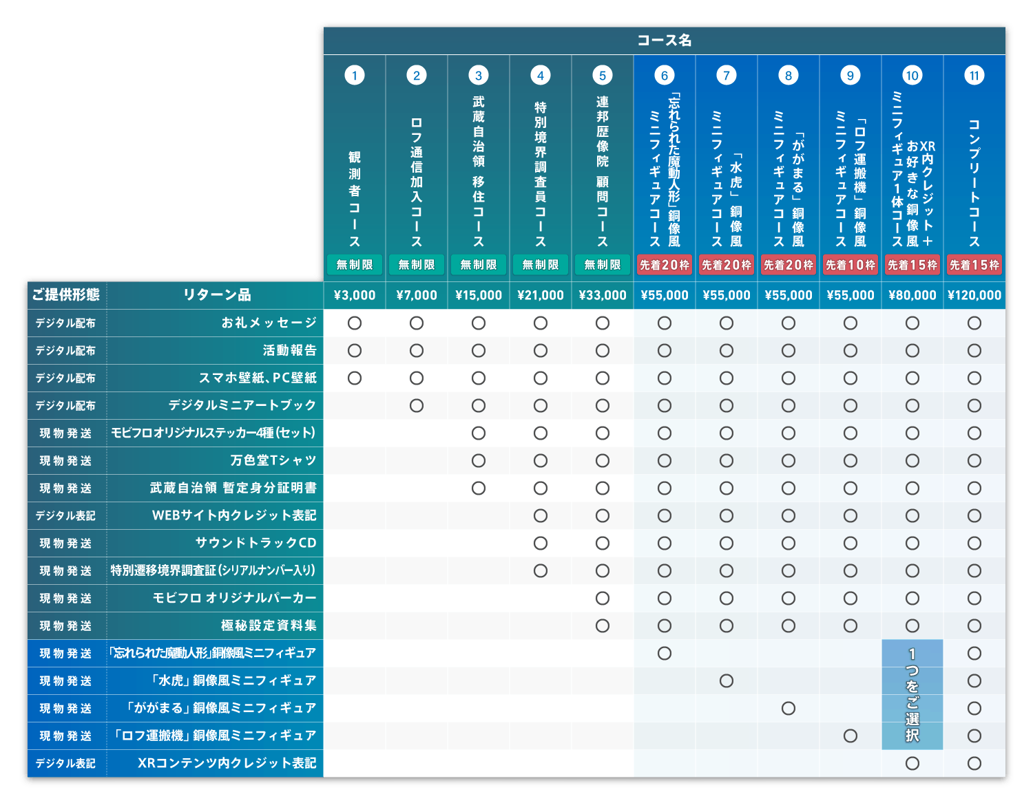 今回の調査を成功させるべく、ここでしか手に入らない希少なものを含め、たくさんのリターン品とご支援コースを用意させていただきました。