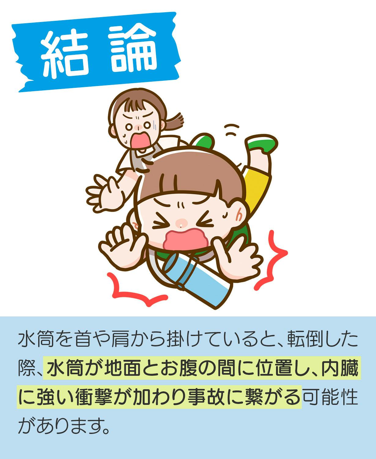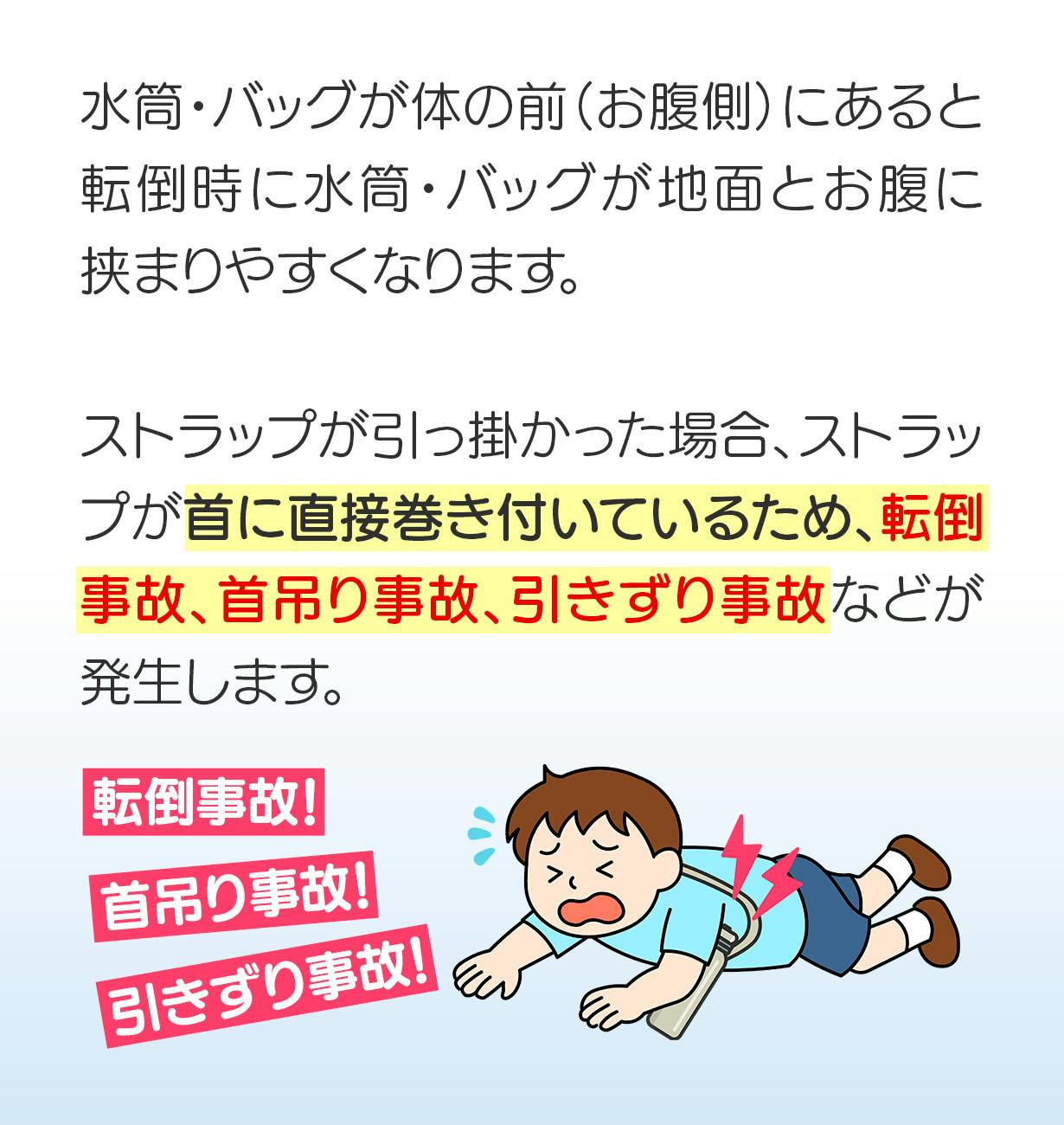 前述の通り、水筒の斜め掛けによる転倒事故が話題になっていたのです。